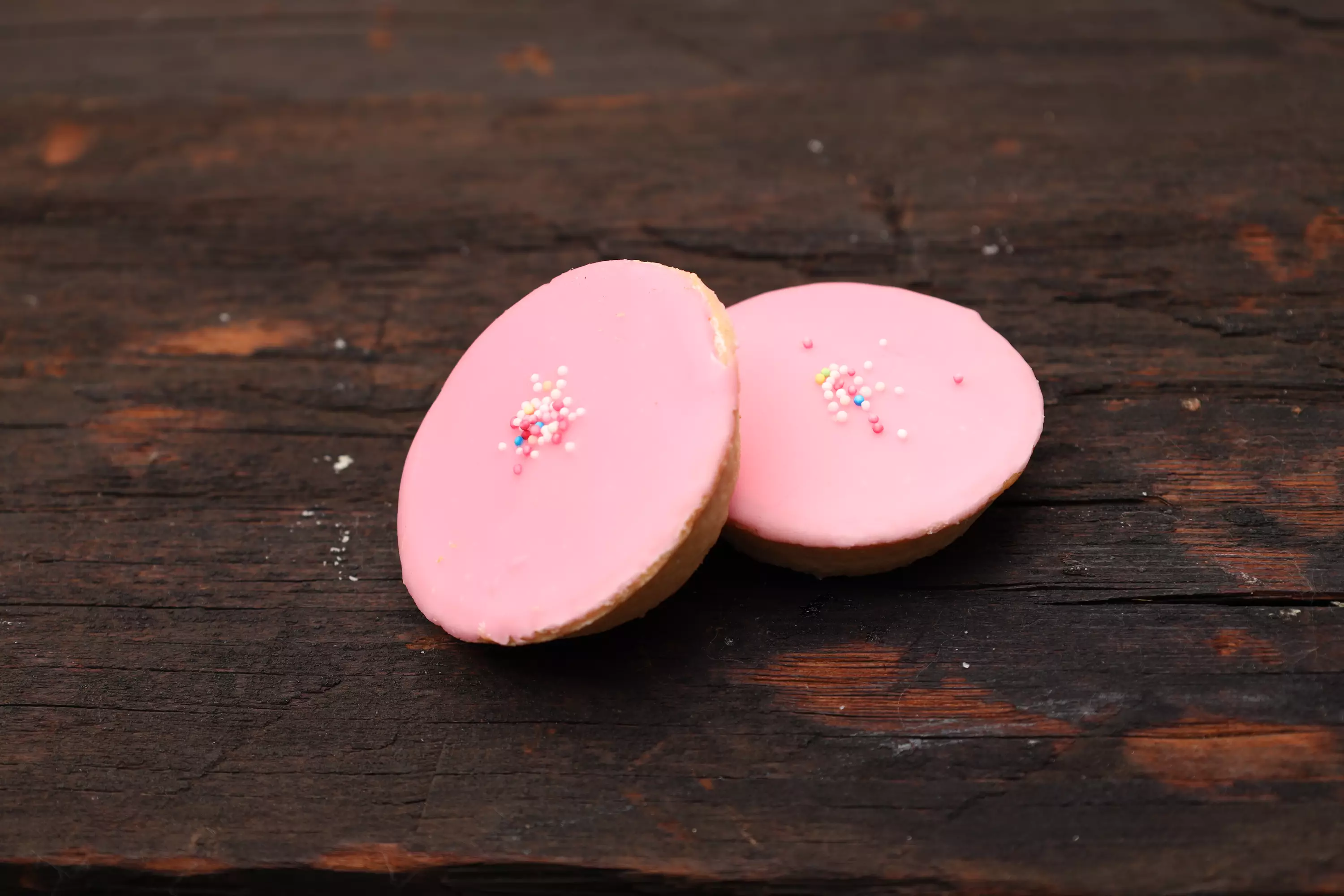Ainekset:VEHNÄJAUHO, Kasvirasva (palmu), Sokeri,KANANMUNA, Vesi, Täyte: Vadelmahillo: Sokeri, Vadelma, Vesi, Hyytelöimisaine E440, Happamuudensäätöaine E330, Säilöntäaine E202, Voikreemi: laktoositon voi, Margariini (Kasvirasva (rapsi ja palmu), Vesi, Jodioitu Suola, Emulgointiaine E471, Emulgointiaine E322, Happamuudensäätöaine E330, Aromi), sokeri, Vaniliini,Säilöntäaine E282, KANANMUNA, pomada: Sokeri, vesi, glukoosisiirappi, emulgointiaine E471 ja Sakeuttamisaineet E 406 , E 410 ,Väri E120, nonparellit:Sokeri, Tärkkelys, Glukoosisiirappi, Väri E100, Väri E101, Väri E120, Väri E131, Väri E160a, Kasviöljy (kookos).
