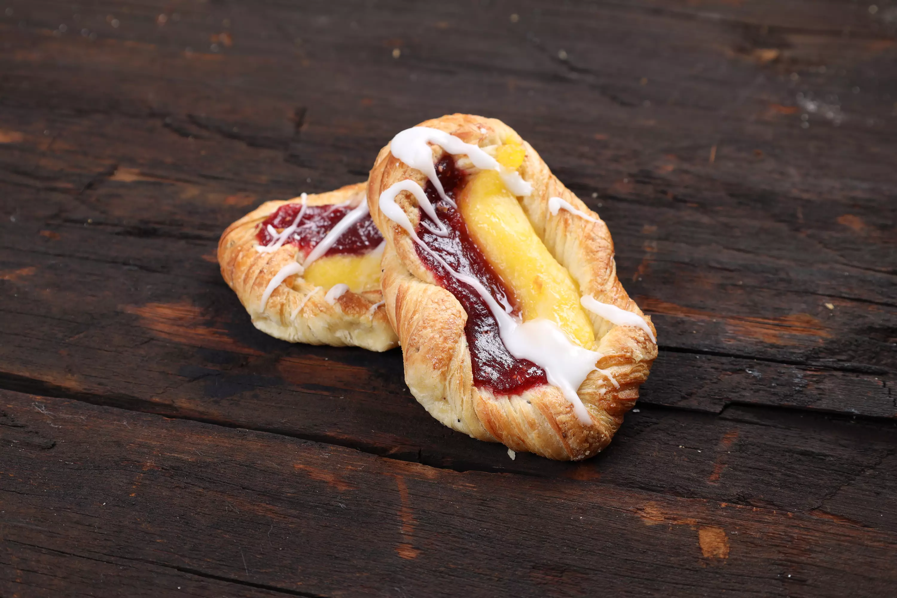 Perinteinen viineri vaniljakreemillä ja vadelmahillolla