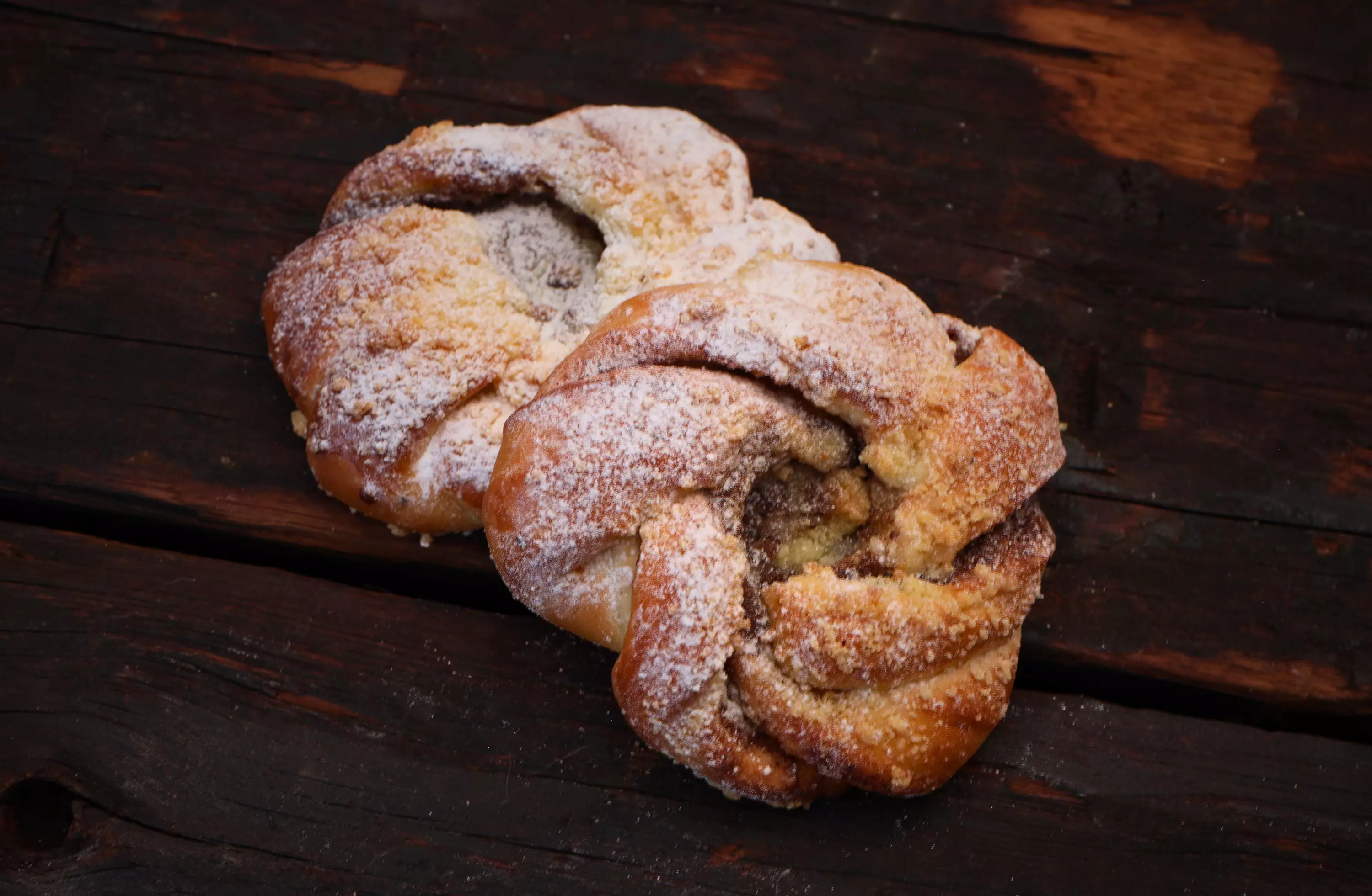 Ainekset: VEHNÄjauho, VEHNÄkuitu, vesi, sokeri, laktoositon VOI, KANANMUNA, hiiva, suola, kardemumma, kaneli, neilikka, inkivääri, maissitärkkelys, kasvirasva (palmu).