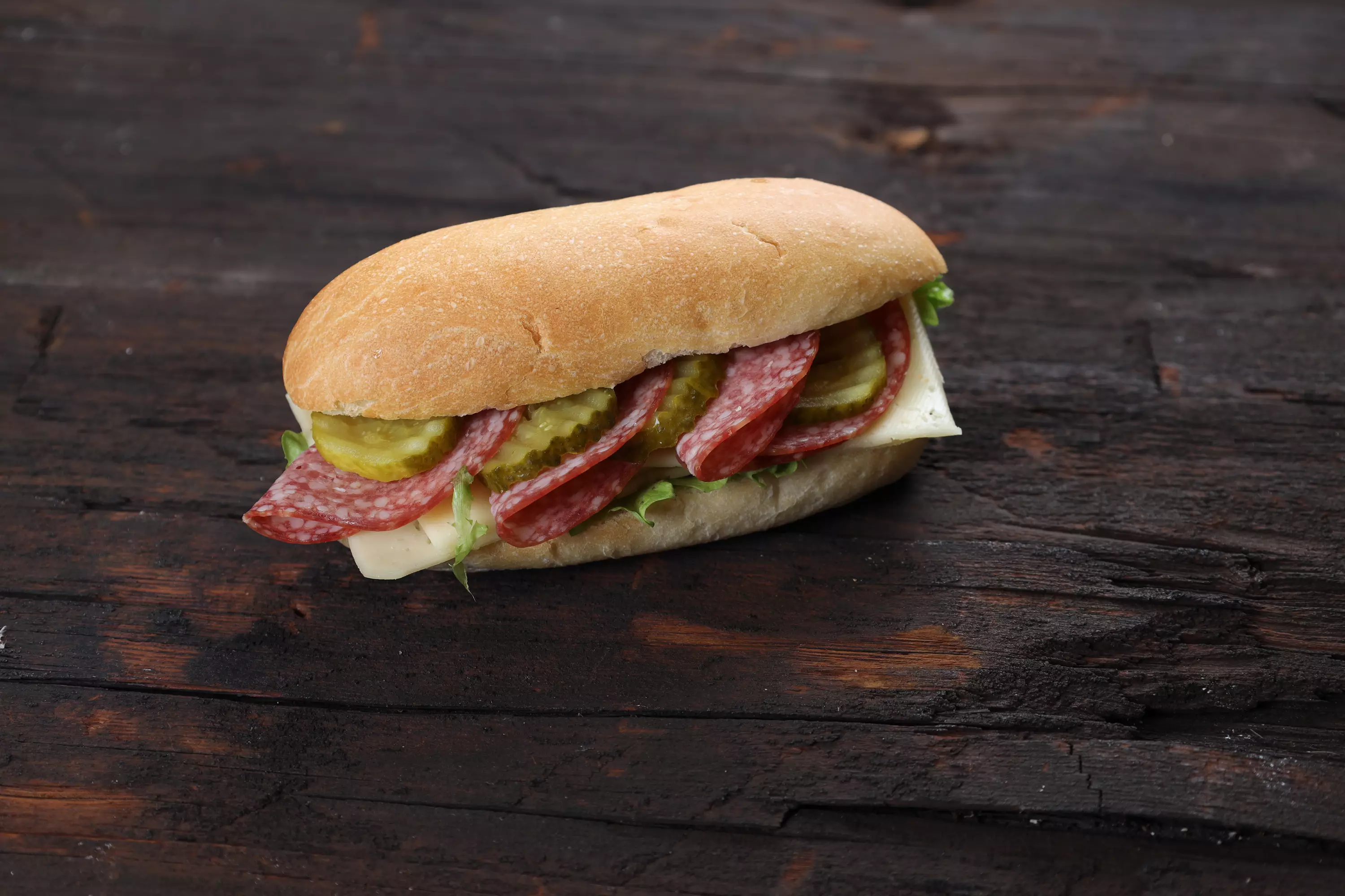 Sämpylä: VEHNÄJAUHO, Rypsiöljy, Hiiva, Sokeri, Suola. VEHNÄGLUTEENI.Täyte; LAKTOOSITON oivariini;VOI, rypsiöljy, vesi, suola ja D-vitamiin. Salaatti, LAKTOOSITON juusto; Pastöroitu MAITO, hapate, suola ja happamuudensäätöaine (E 509).Metwursti: suomalainen liha,(porsas, nauta),jodioitu suola,lihaproteiini, mausteet,aromit(mm. valkosipuli), hapettumisenestoaine(askorbiinihappo),säilöntäaine(E250).suolakurkku.