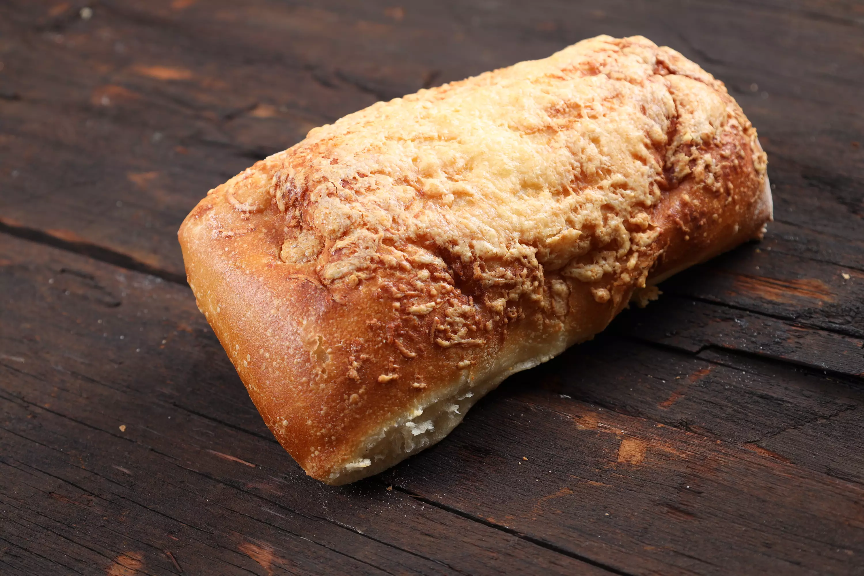 Reilusti valkosipulilta maistuva herkutteluleipä juustokuorrutuksella
