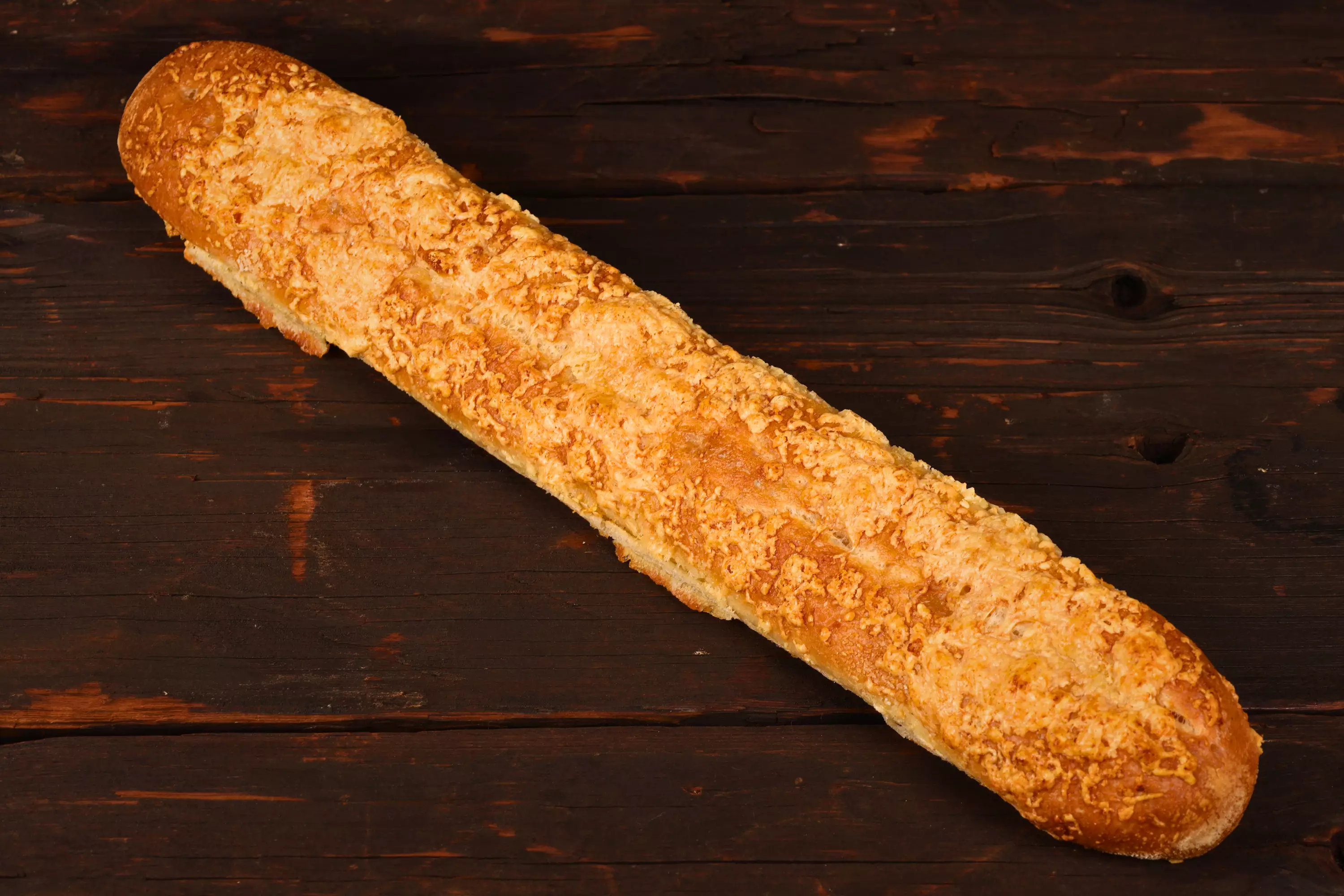 Vehnäpatonki valkosipulisella juustokuorrutteella.